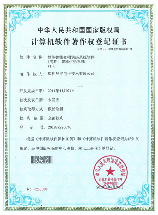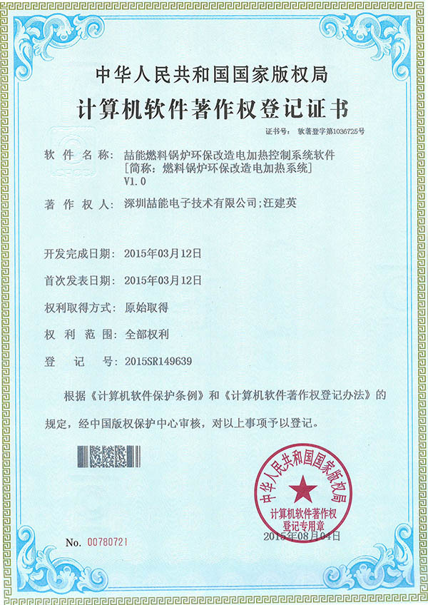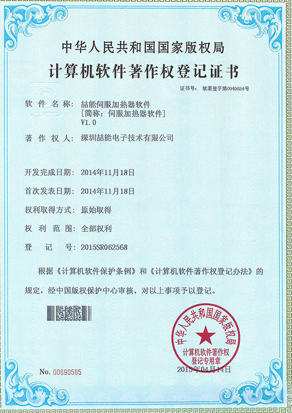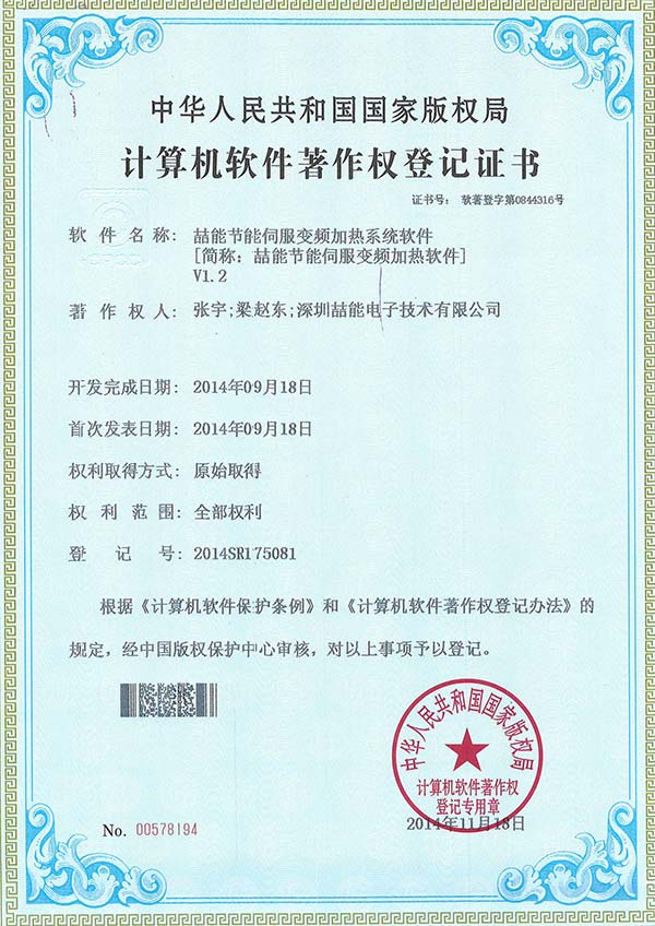 計算機軟件著作權:喆能節能伺服變頻加熱軟件
