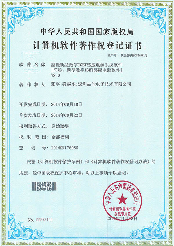 計算機軟件著作權:新型數字IGBT感應電源軟件